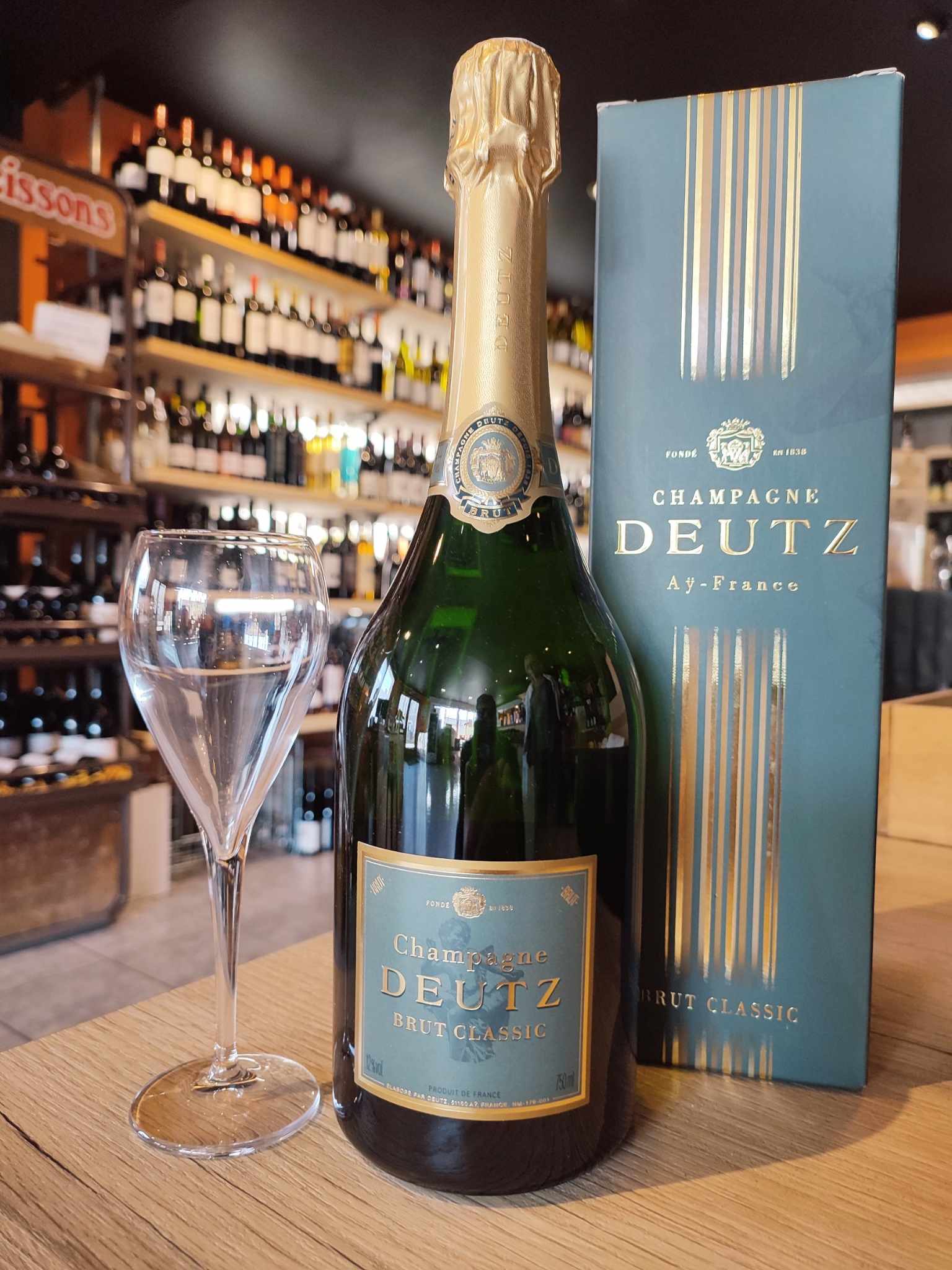 Le Brut Classic Deutz présente une robe or soutenu et un perlage d’une grande finesse, signature d’un long mûrissement sur lies.