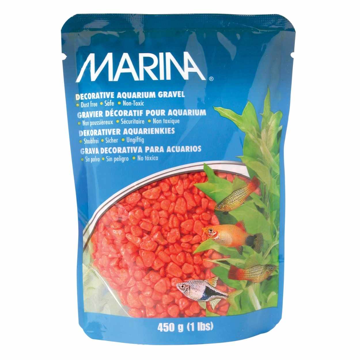 Le gravier décoratif Marina ajoute de la couleur à un décor d’aquarium. Étant recouvert d’un revêtement époxyde, il est inerte et n’a donc aucun effet négatif sur l’équilibre chimique de l’eau.
