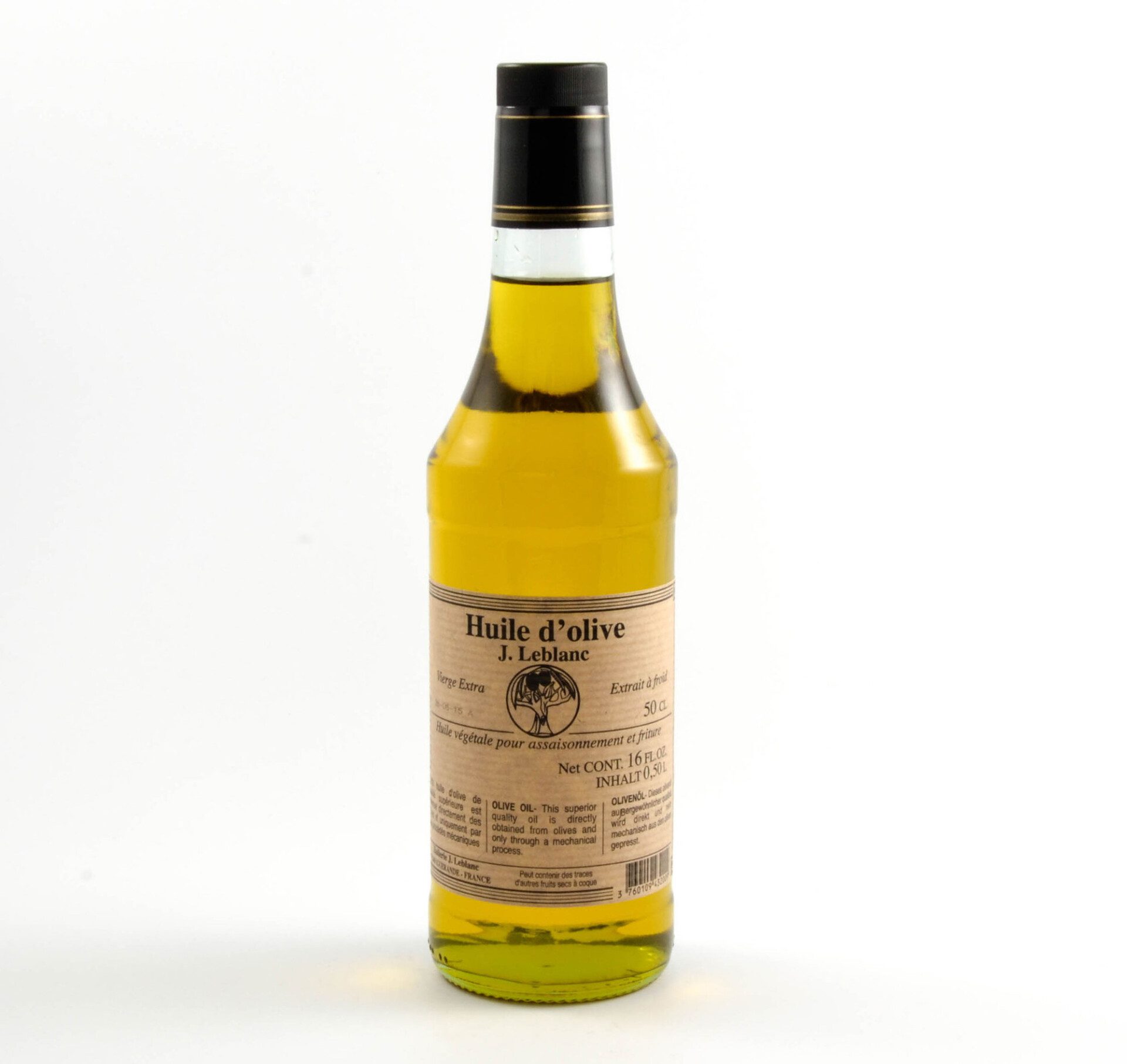 L’Huile d’Olive Leblanc, d’un vert bien pur, au goût très fruité, écrasée à la meule de pierre, est d’une qualité exceptionnelle. Elle s’accorde bien évidemment avec la cuisine méditerranéenne. En 50 cl, elle va de la cuisine à la table sans le moindre souci.