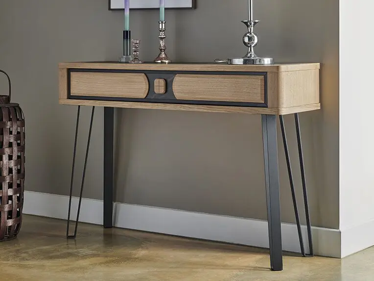 - Côtés en panneaux de particules revêtus de placage chêne.